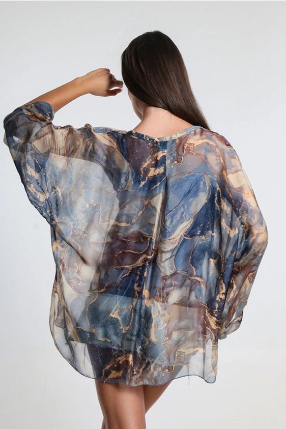 ROSANA MARBLE SILK SHEER BLOUSE-JEANS - Kingfisher Road - Online Boutique