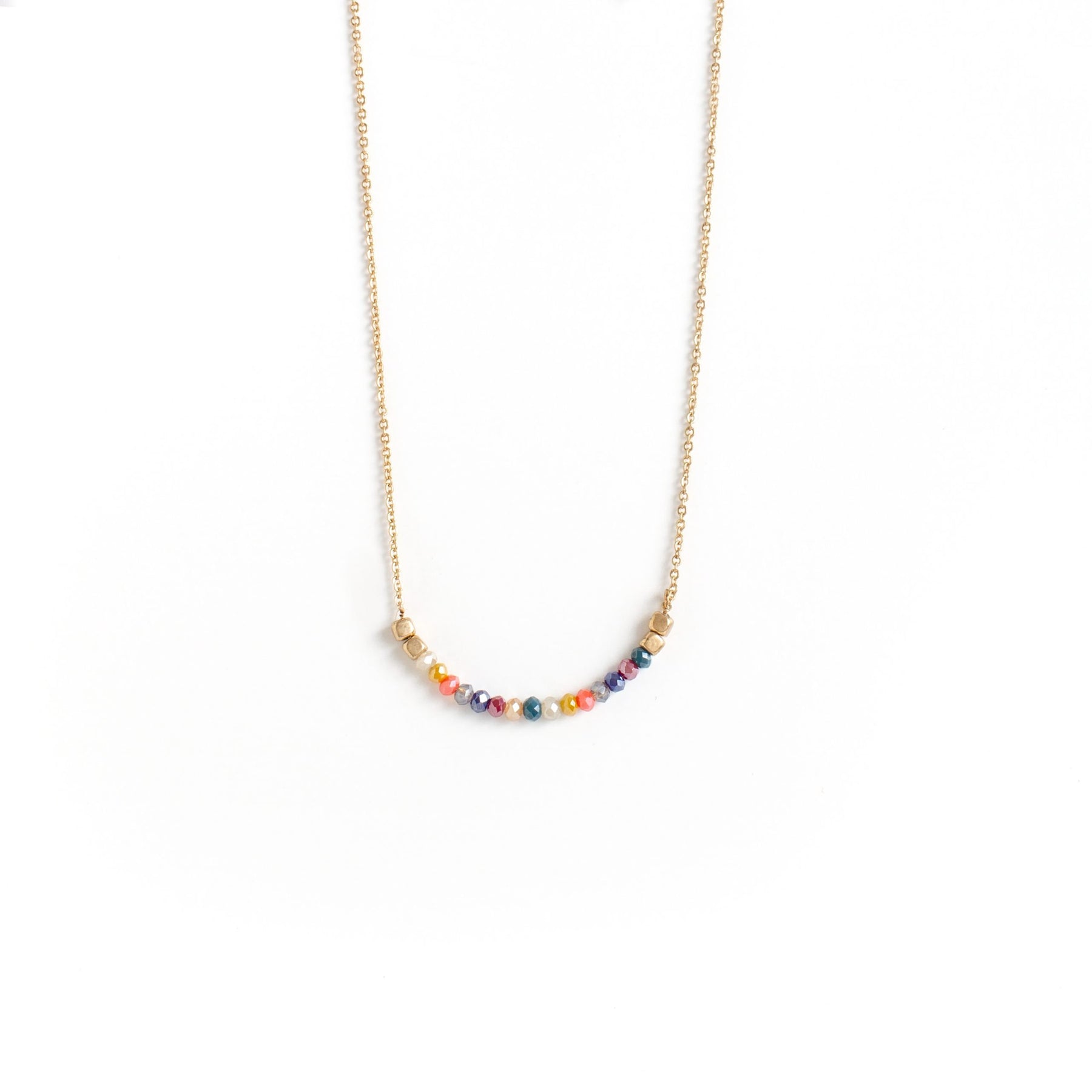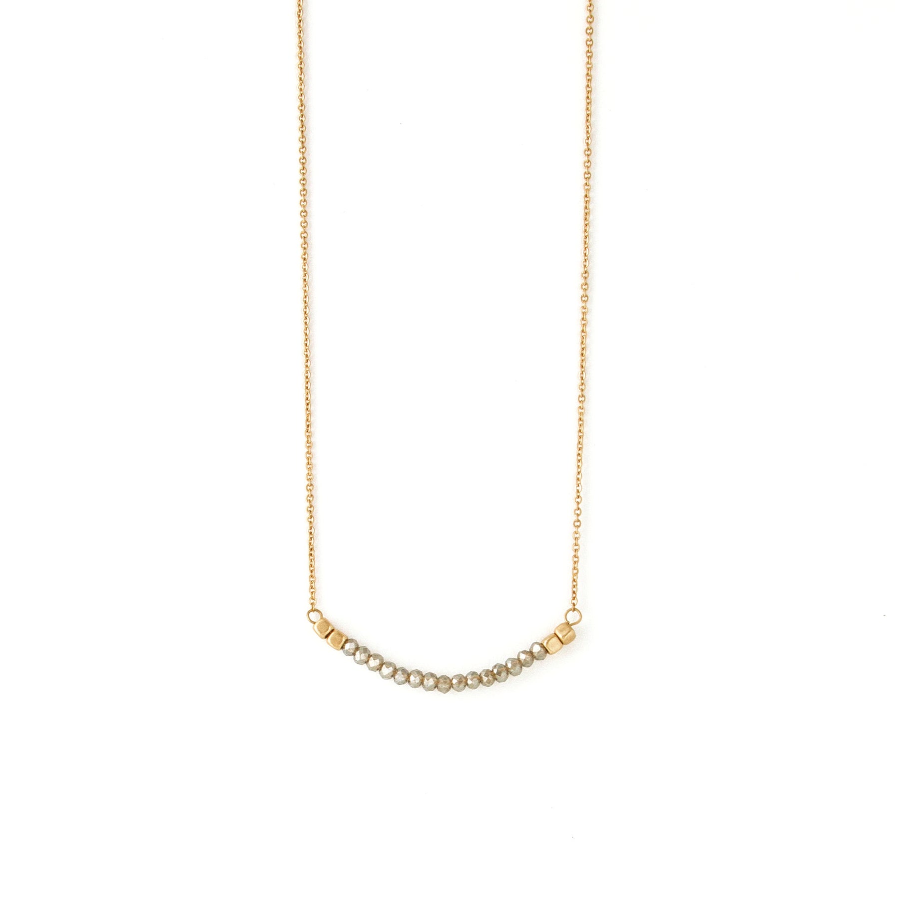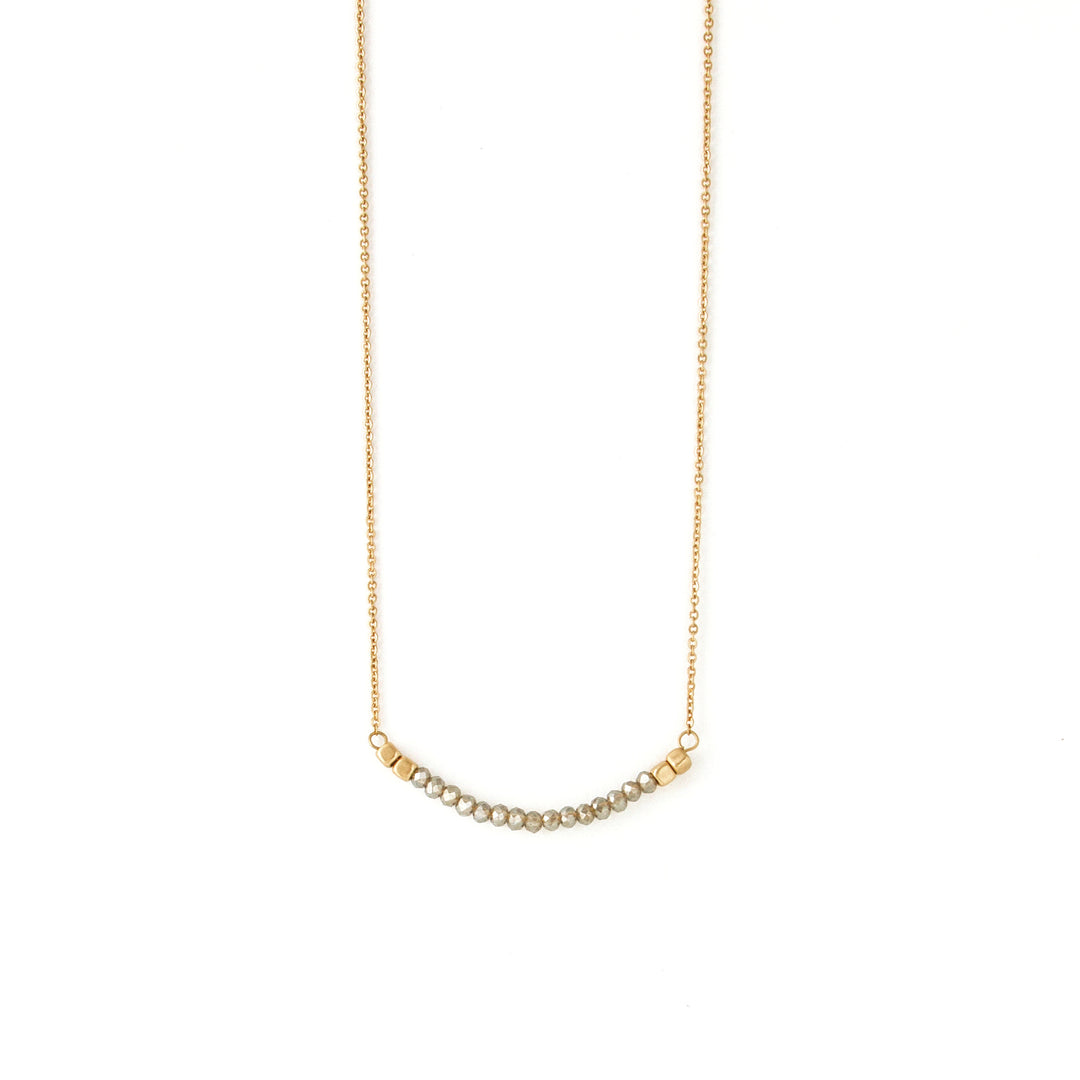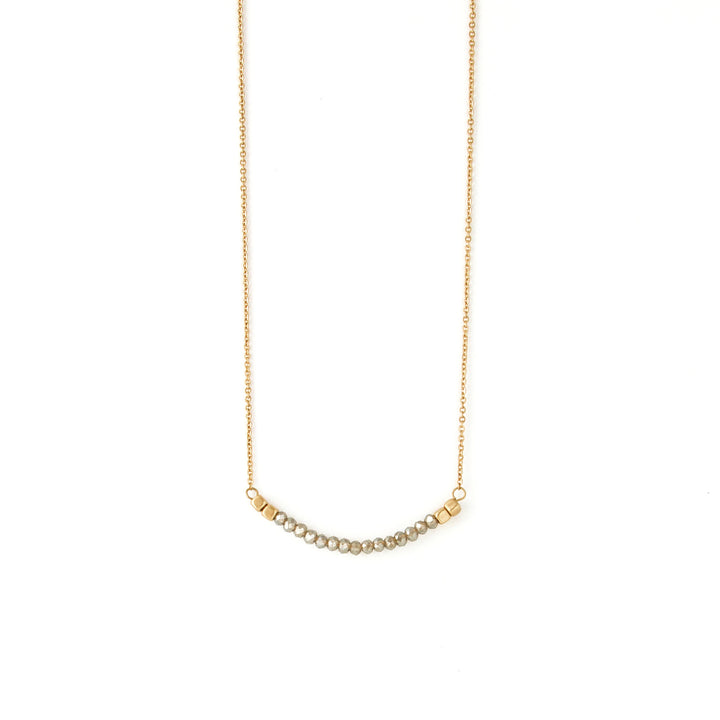 Simple chain necklace with rounded bar detail. Bar features rounded design with crystal stone accents.