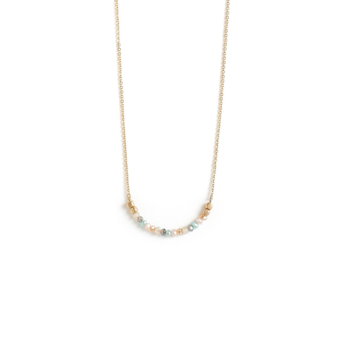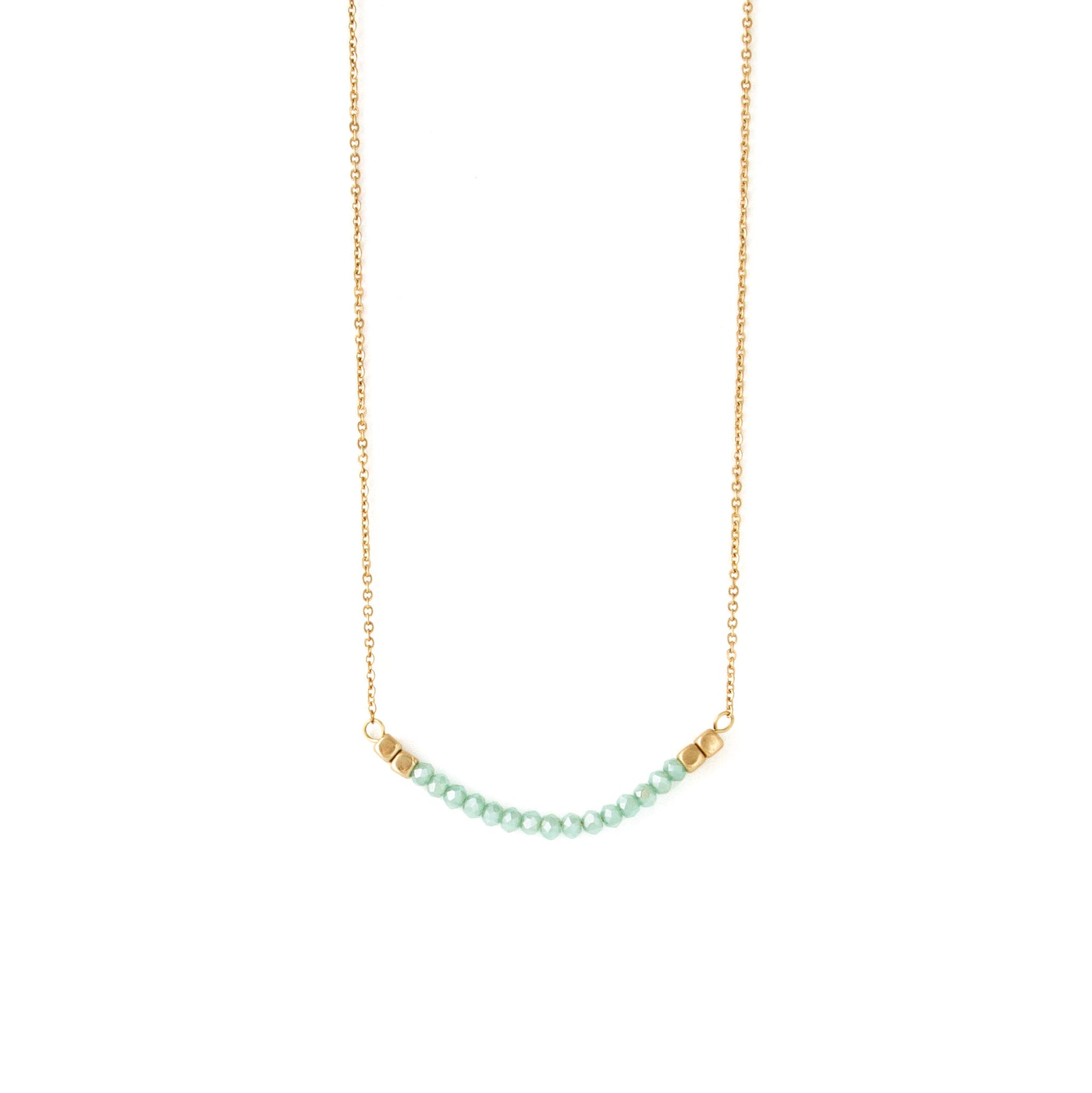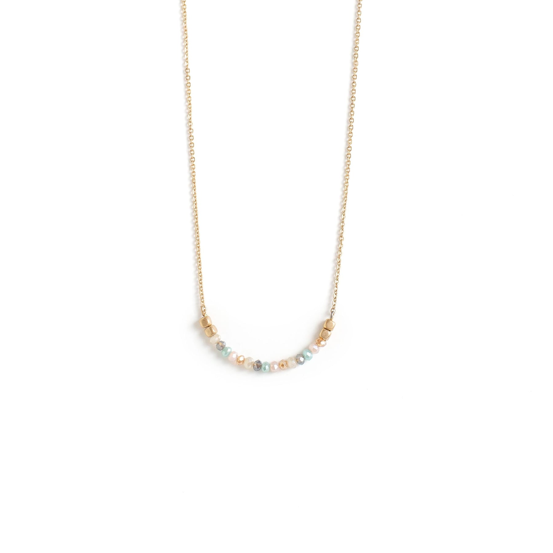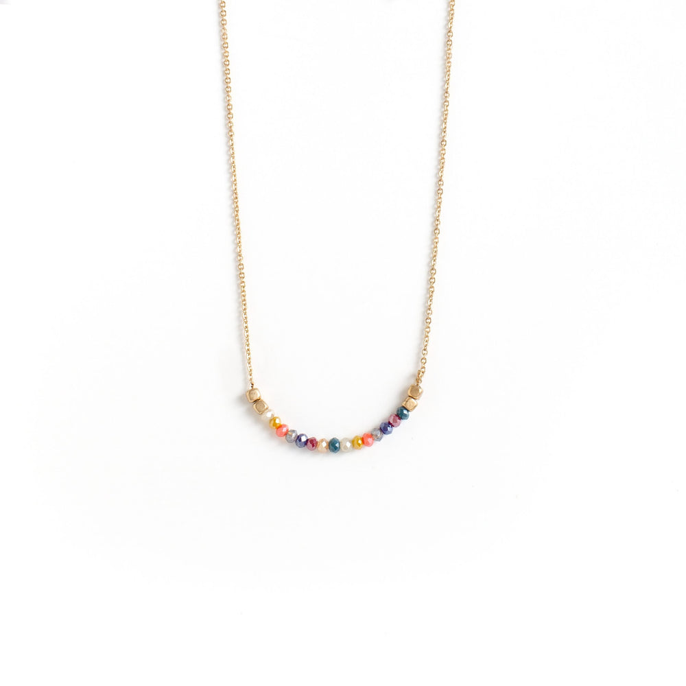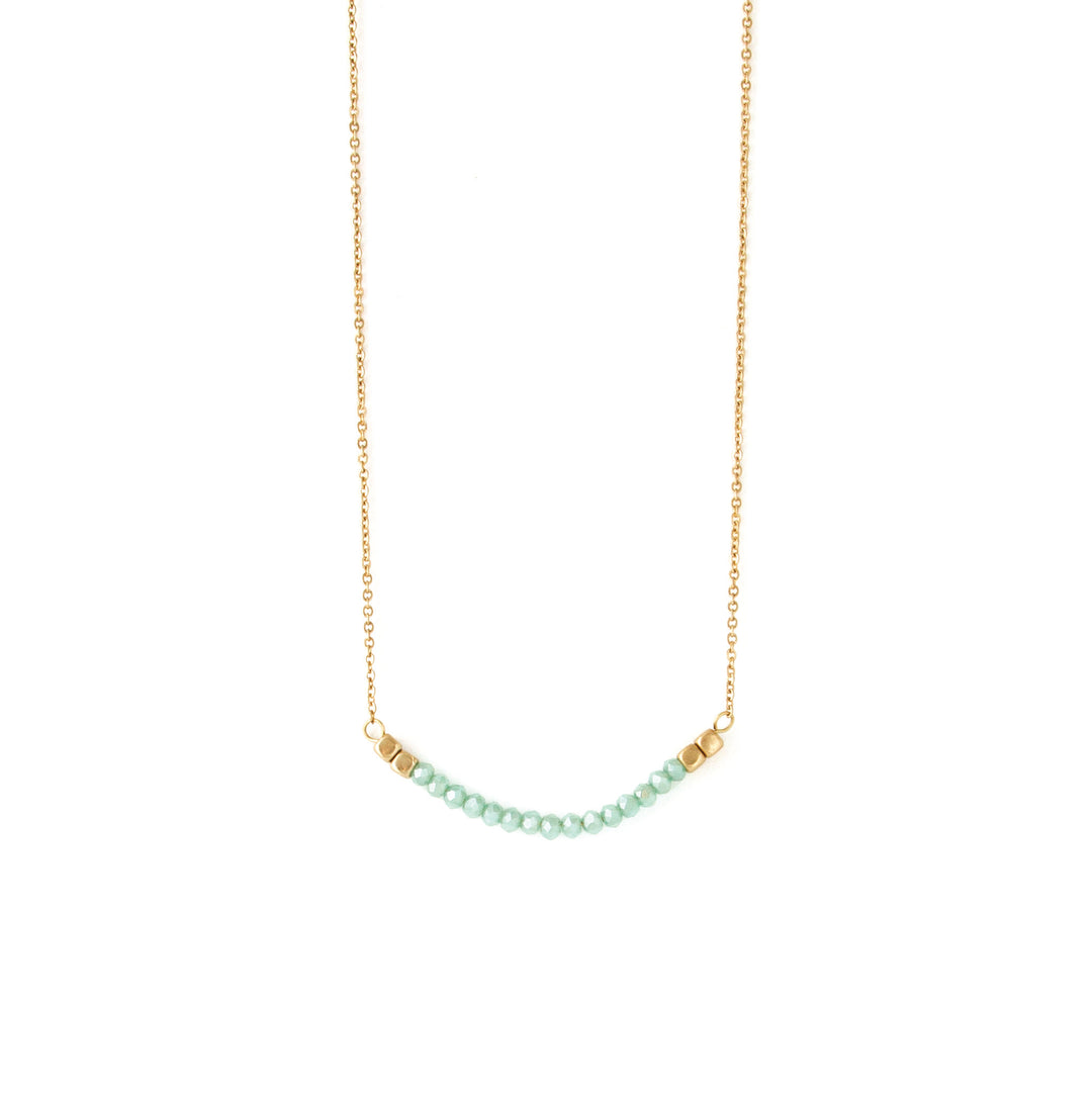 Simple chain necklace with rounded bar detail. Bar features rounded design with crystal stone accents.