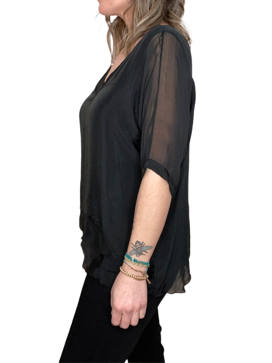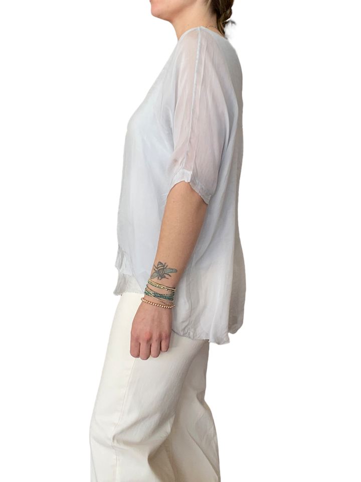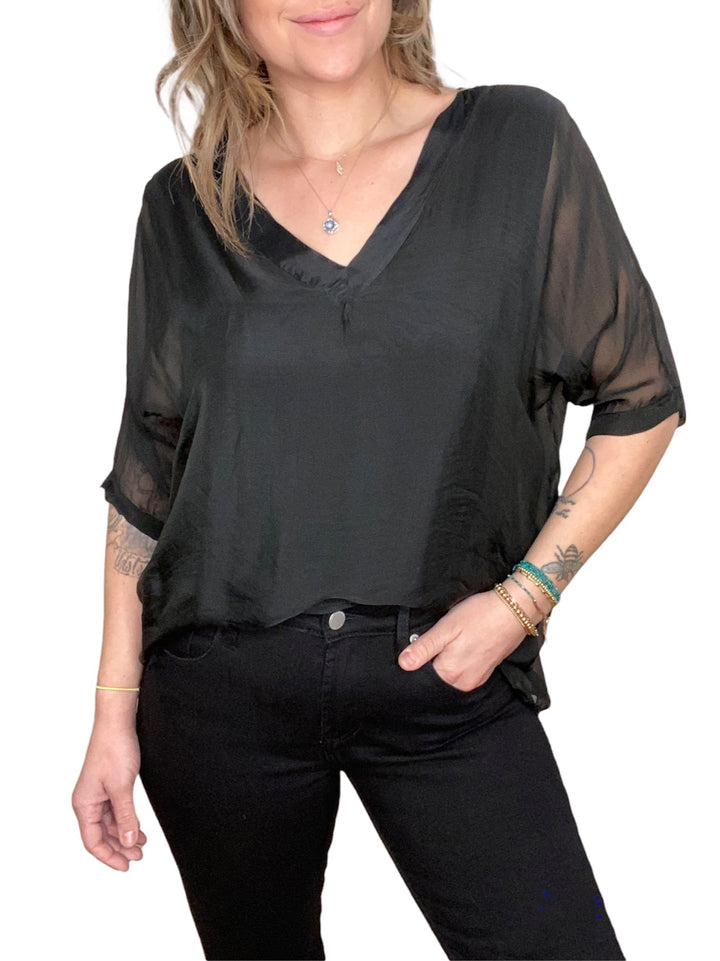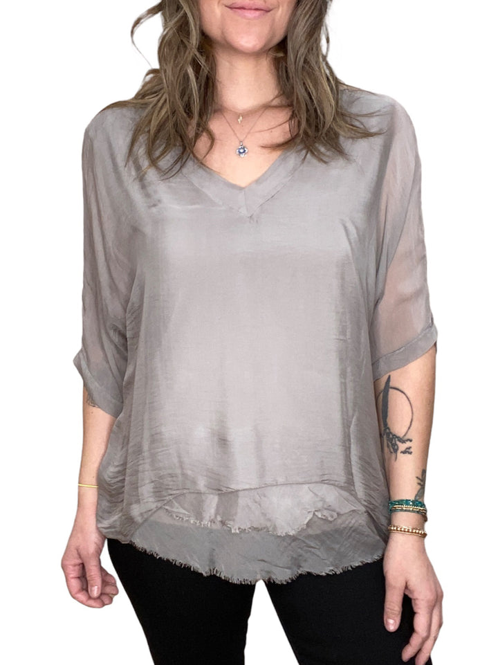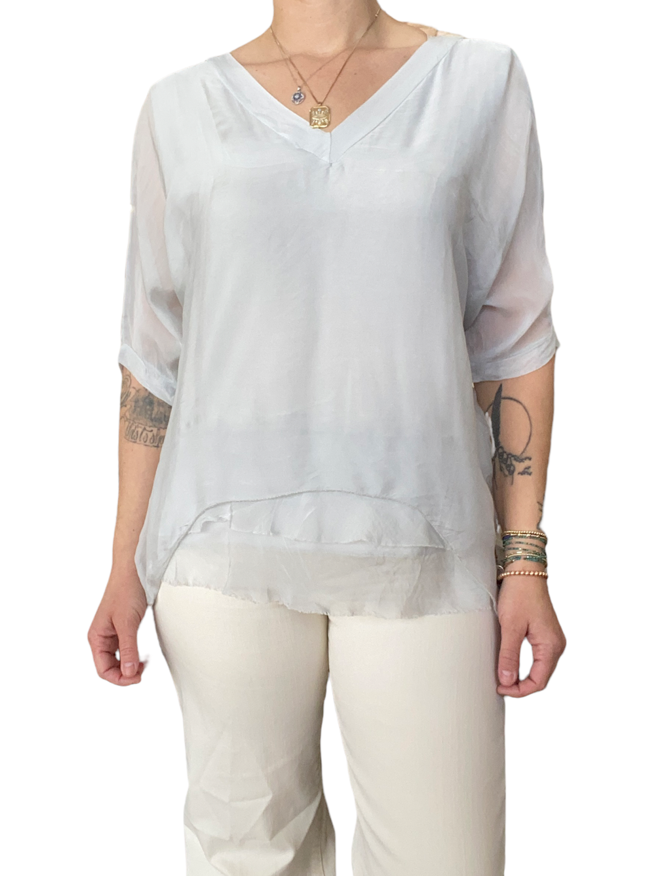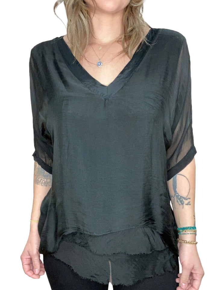 SILK V-NECK RUFFLE TOP - Kingfisher Road - Online Boutique
