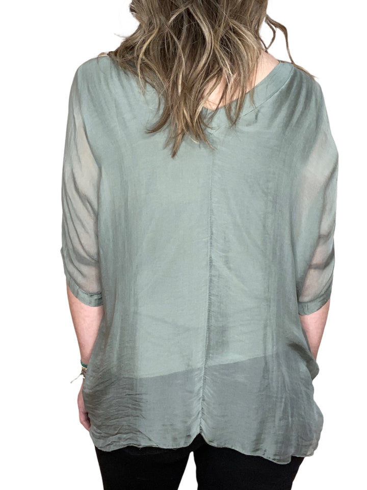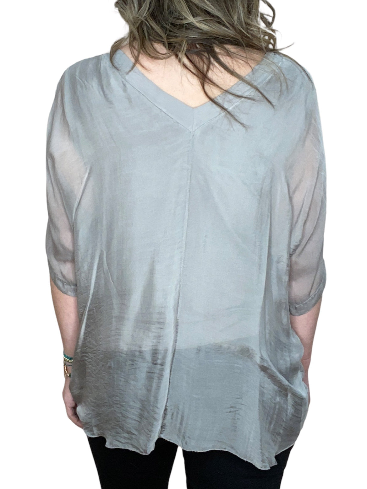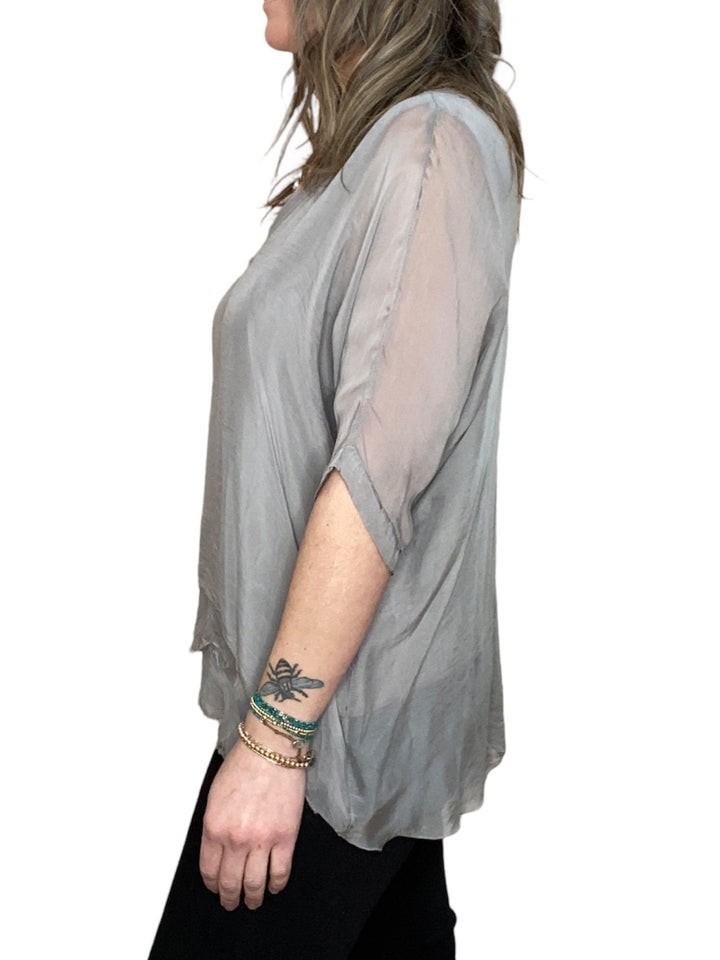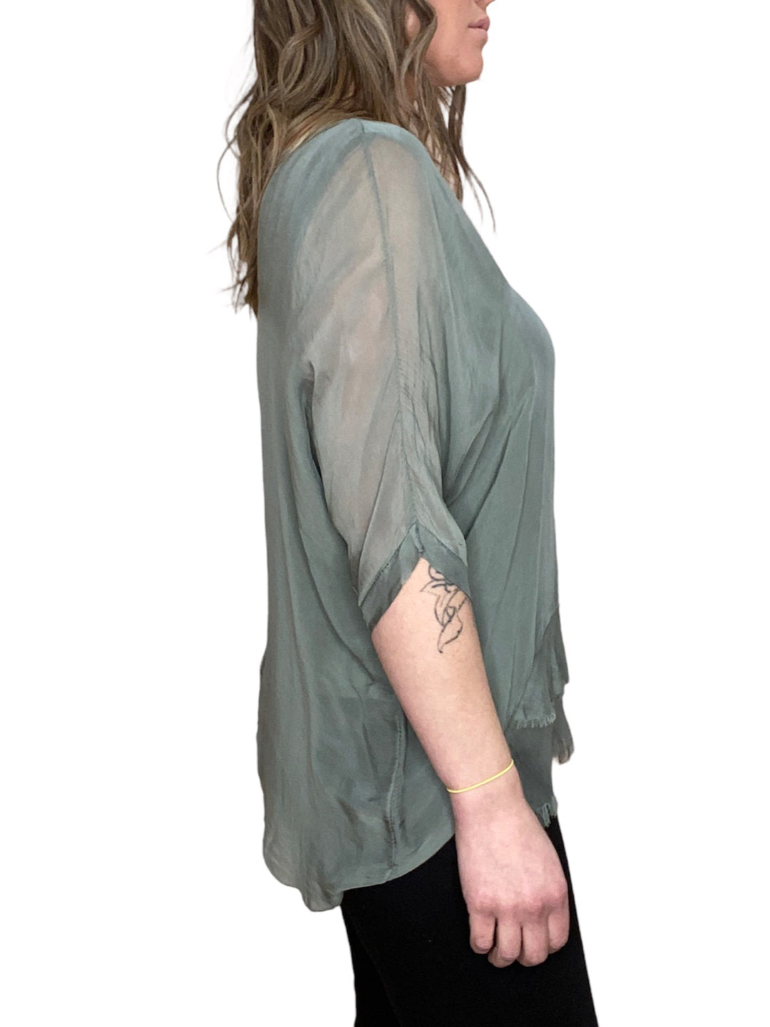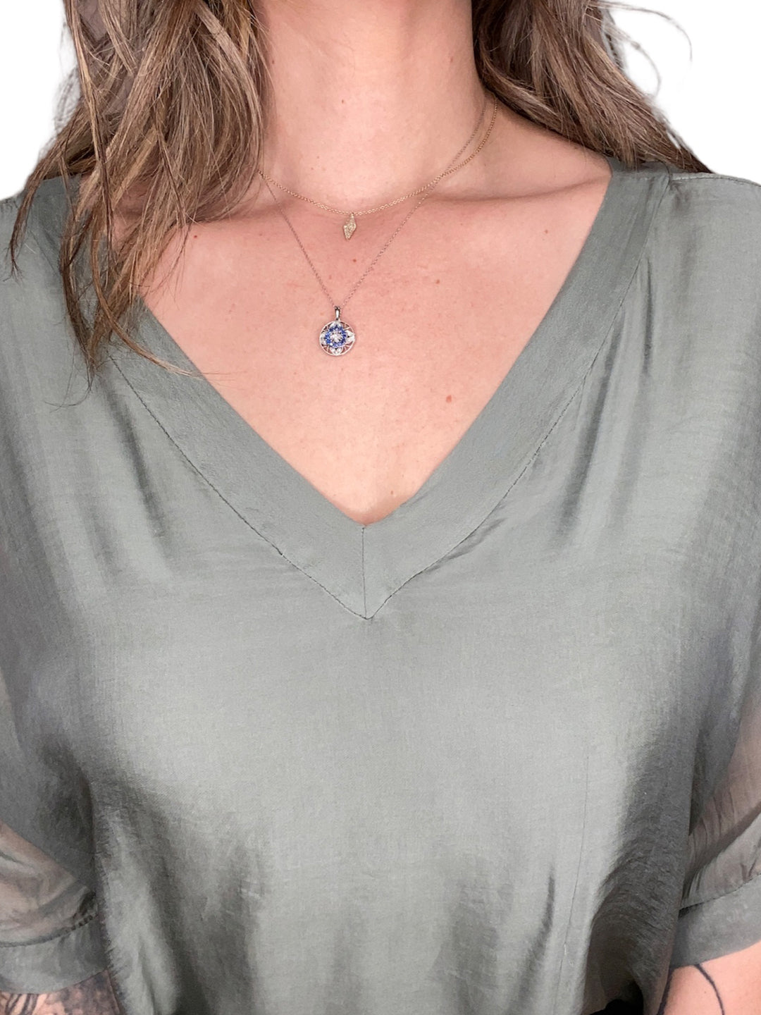SILK V-NECK RUFFLE TOP - Kingfisher Road - Online Boutique