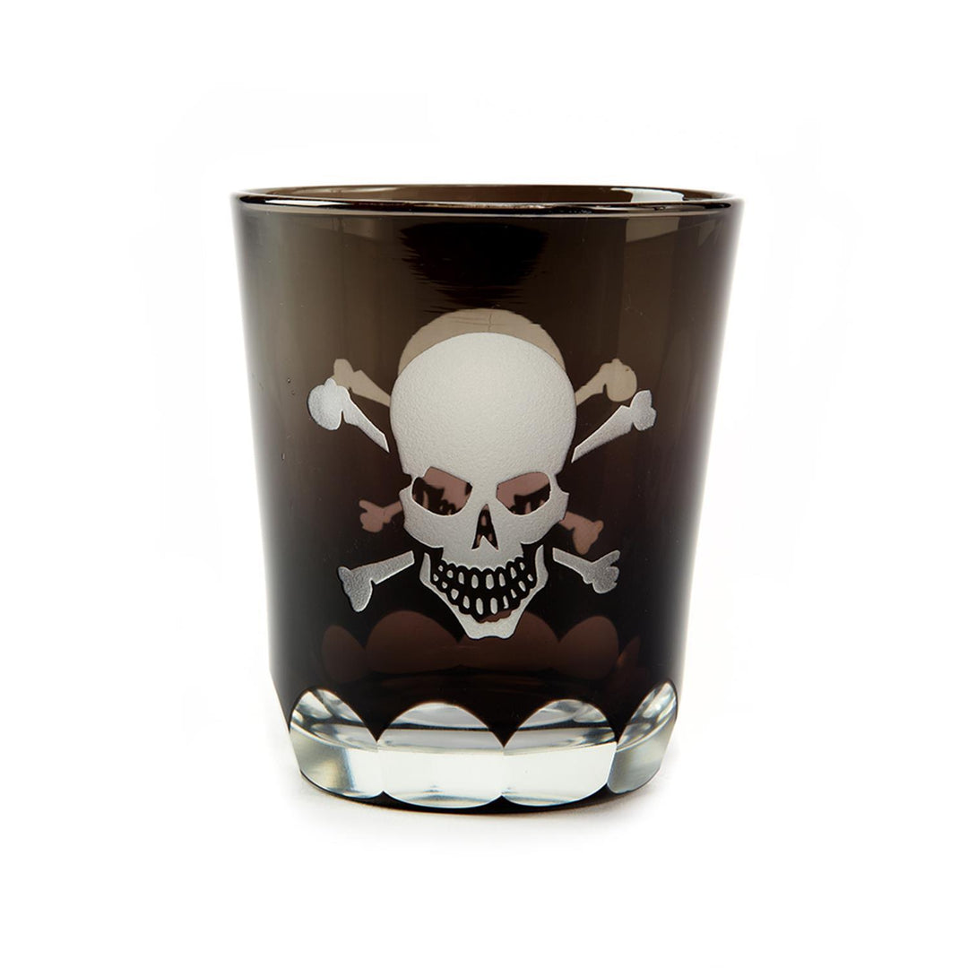 Pick your poison with this spirited skull old fashion glass. Each is crafted from glass and hand-etched with a skull and cross bones design. This old fashioned glass can be used for Halloween or all year round.