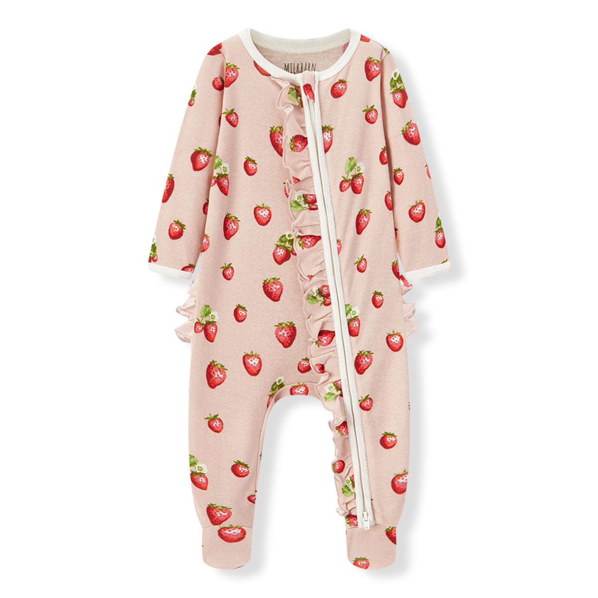 STRAWBERRY ORGANIC COTTON RUFFLE FOOTED ROMPER - Kingfisher Road - Online Boutique