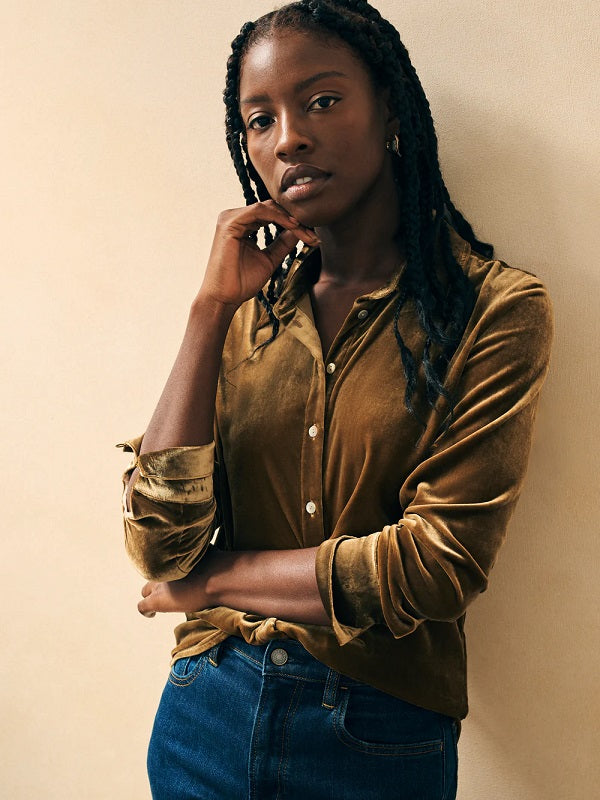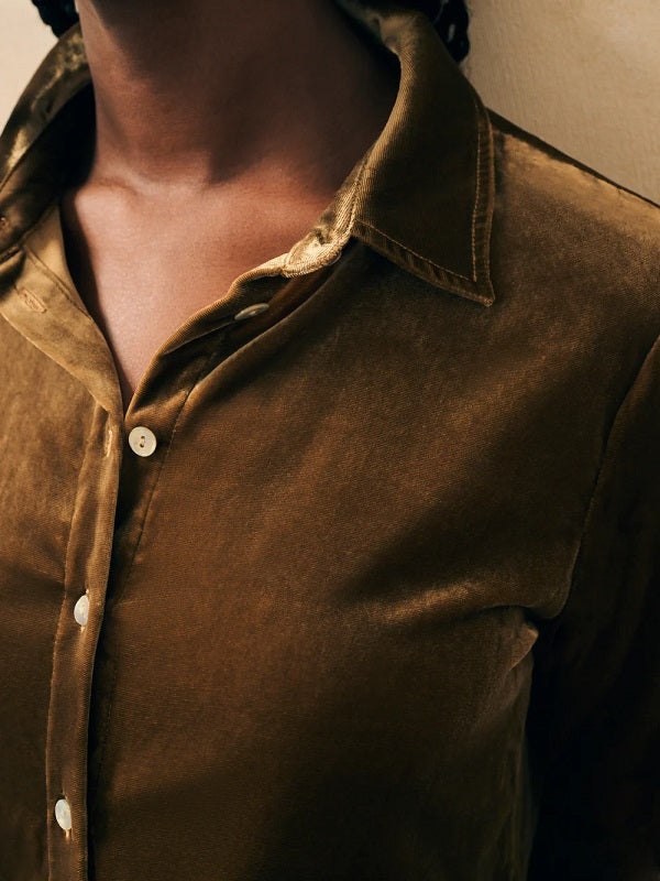 Inspired by our vintage finds, this buttery soft silk velvet shirt is cut with a relaxed fit that heightens its casual luxe attitude. Pair with denim or make a chic.