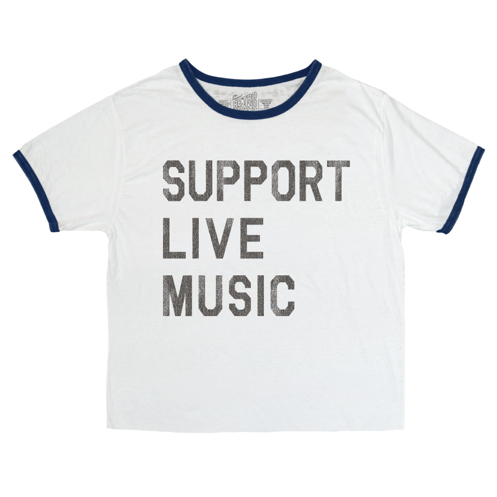 Upgrade your concert look with our Support Live Music Tee in navy! This tee features a trendy ringer neck and cut off hem, adding an edgy twist to your outfit. Show off your love for live music while staying stylish and comfortable.