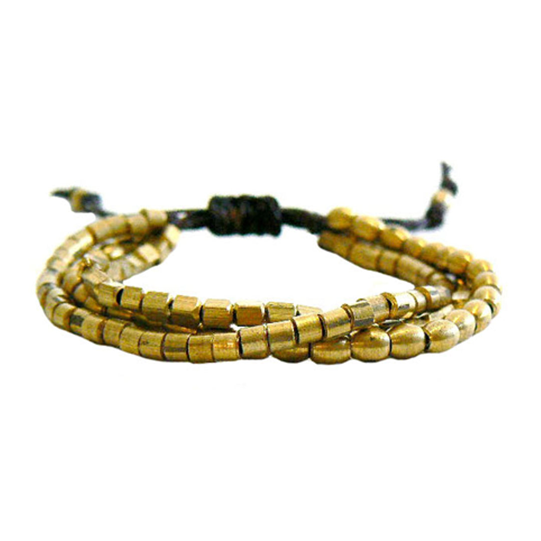 Adjustable sliding knot bracelet with brass beads. Three strands of beads for the ultimate look.