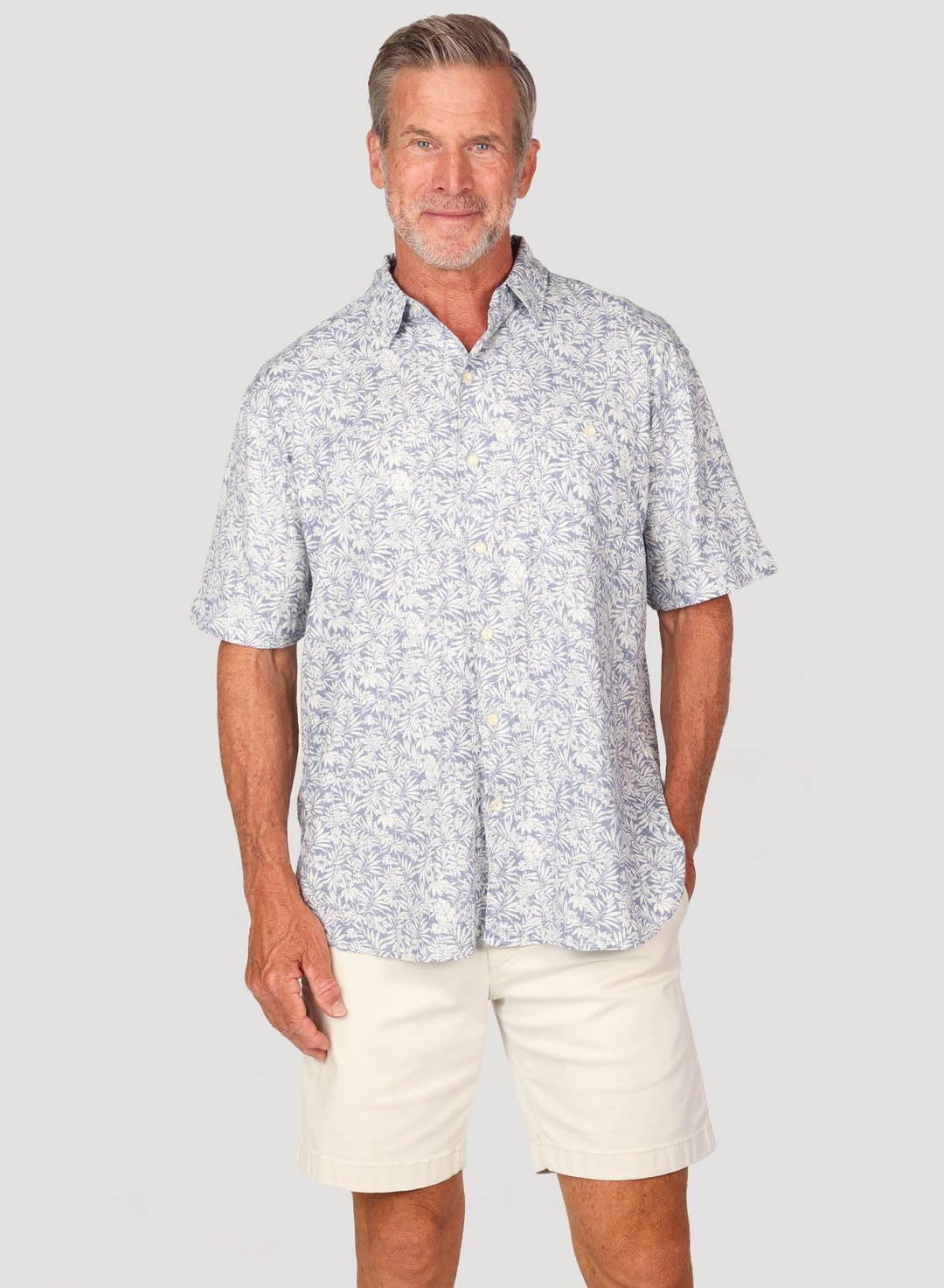 This soft and breezy shirt with tropics detailing is your go to shirt for work or play. Signature secret wash and details.