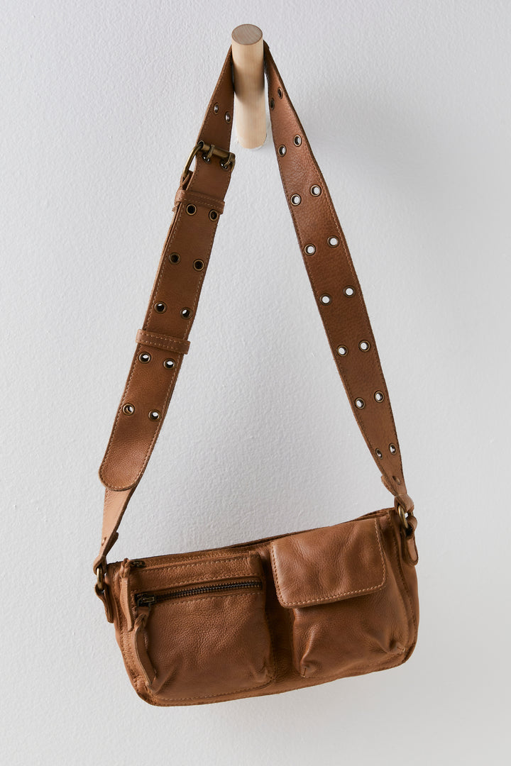 - Features: Sling style, rectangle-shaped silhouette, multiple exterior pockets, adjustable grommet buckle strap, spacious interior compartment.