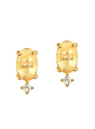 YELLOW OVAL ROCK CRYSTAL POSTS WITH CZ